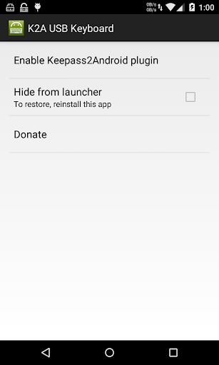 Keepass2Android USB Keyboard Plugin is similar to the official InputStick plugin but requires no additional hardware. Just plug your phone into a PC and press type. Your password will be sent to the PC just like you type it.