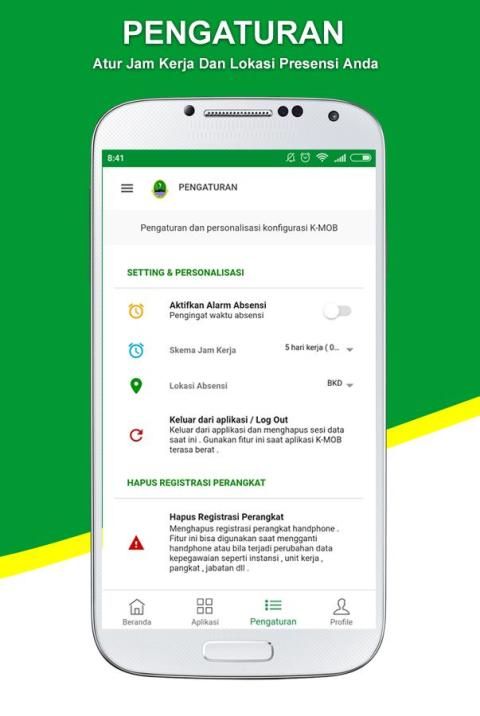 Kehadiran Mobile merupakan aplikasi real time untuk mengukur kehadiran pegawai di kantor maupun luar kantor secara real memanfaatkan teknologi Wi Fi dan GPS. Bisnis proses yang dirancang menyesuaikan dengan ketentuan perundang-undangan yang berlaku di lingkungan pegawai negeri sipil antara lain Peraturan Pemerintah Nomor 11 Tahun 2017, Peraturan Pemerintah Nomor 53 Tahun 2010. Skema presensi yang ditampilkan meliputi :