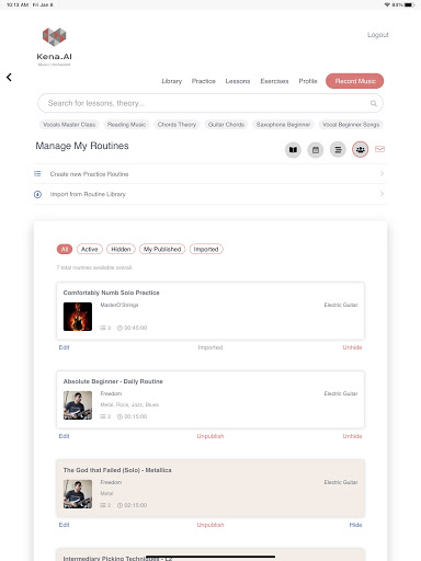 - Practice routines library