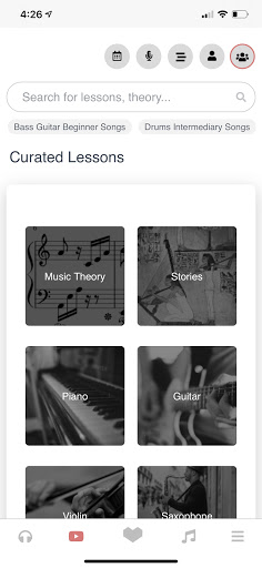 - 1000 free curated lessons and Music Theory across Guitar, Piano, Saxophone, Vocals, Violin, Flute, Drums, Cello and more.