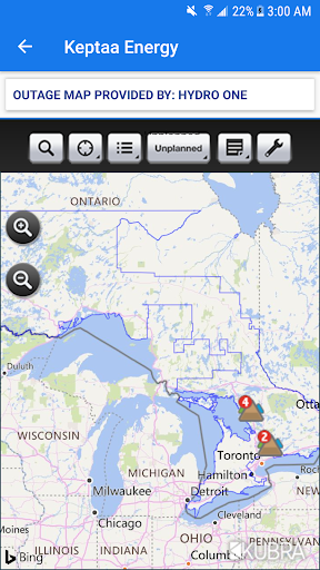 * Keptaa provides power outage map provided by Hydro One for Ontario.
