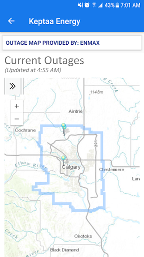 * Keptaa also provides power outage map provided by Enmax for Alberta, you can use the app to report power outage as well.
