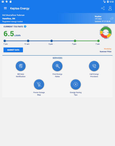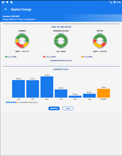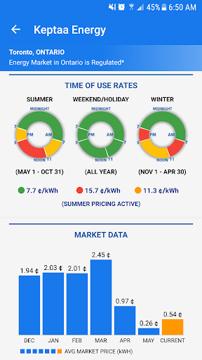 * Keptaa will show you the current Time of Use Rates for Ontario.