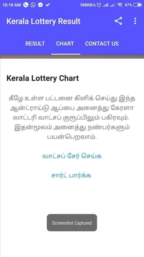 In this app, We publlishes Kerala Lottery Result on time and we publishes also Winning Numbers Chart. So you can easily see the Result and Chart in One place. This will be helpful for you. Thanking You.