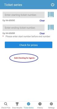 The application support tickets in series (for the agents this would be handy). Just scan the first ticket (or enter manually) and the last ticket and check for prizes. Application would list down all the tickets with corresponding prizes, if any. For future dated tickets, you can check it as soon as you have an alert from the App reminding you that the results are available.