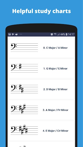 This app tests your ability to recognize all the different key signatures in music. Musical notation becomes easier to read if you have a solid grasp of key signatures. Good key signature recognition will improve your sight-reading ability and will give you a sound base on which to understand music theory and music composition better.