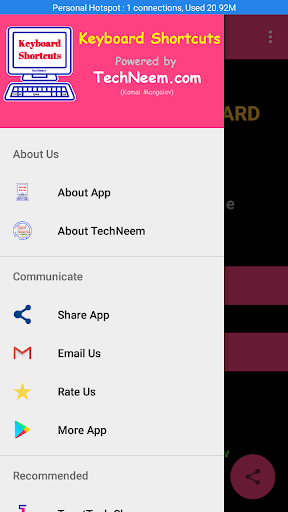 The application Keyboard shortcuts has been developed by Kamal Mangalav (Programmer and blogger of TechNeem.com).