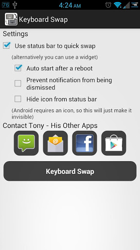 With Keyboard Swap you can switch keyboards with any of the 3 different methods: