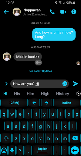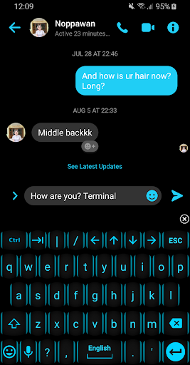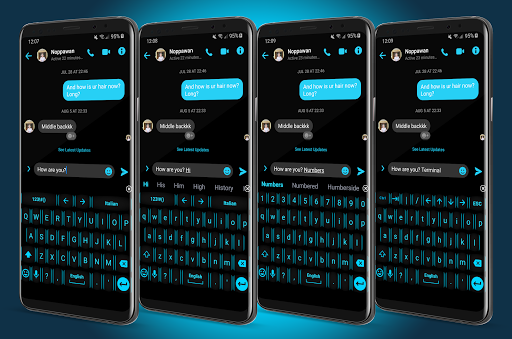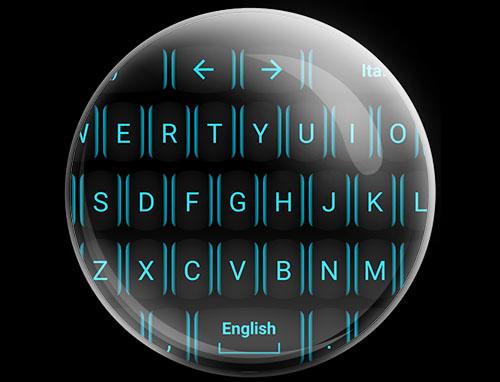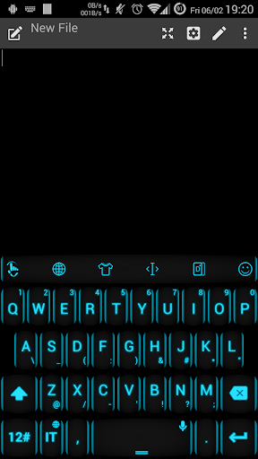 This is a theme with neon blue azure keys over a black background for AnySoftKeyboard and TouchPal Keyboard application.