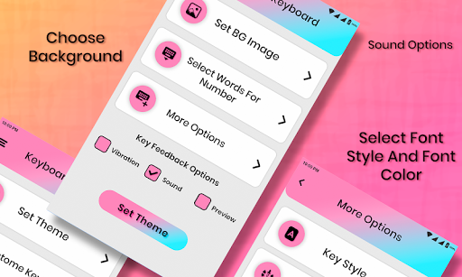 you can customization of your keyboard with awesome fonts,theme,background and fun sounds.