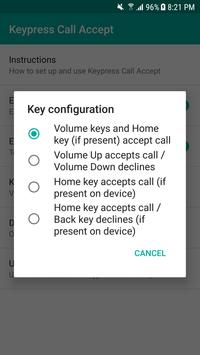 NOTE: Accepting/declining a call using the volume buttons works on any device. However, in order to accept/decline a call using the Home or Back key, your device needs to be equipped with a physical/capacitive Home or Back key (like those found on the Samsung Galaxy S7/S6 etc.). Keypress Call Accept only works with physical/capacitive keys, not the on-screen keys.