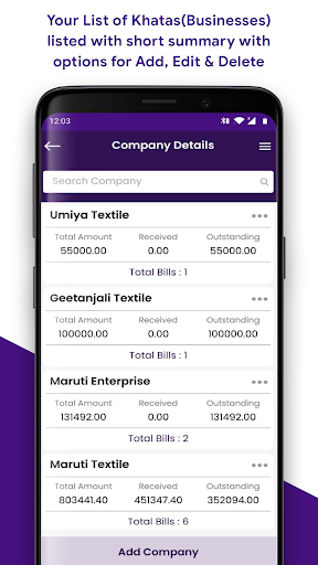 Khata Hisab is an Application for on the go specially designed for all the Power Looms Houses, Manufacturer of Gray Fabrics. It is 100% Safe and Secure to use. Weavers can use this App for storing all the sales data and tracking its payments and it has one of the best Feature of Payment Reminder and it has great functionality over multi devices.
