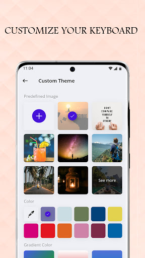 Khmer keyboard app will allows you to type message, Story, E-mails etc. in Khmer language. You will find superb eye catching themes from Khmer Keyboard. You can set your own photo in keyboard and make it cute. Khmer Keyboard app will also provide custom settings. Of course you want such lovely and cute Emoji, so it is also there.