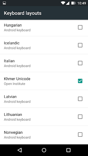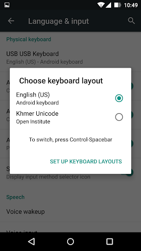 2. Add more keyboard layout by going to Language and Input in the Setting and check on Khmer Unicode(Open Institute)