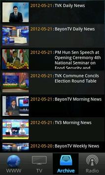 Watch live and archives Cambodian TV, TVK, BayonTV and TV3 and listen to Khmer radio.