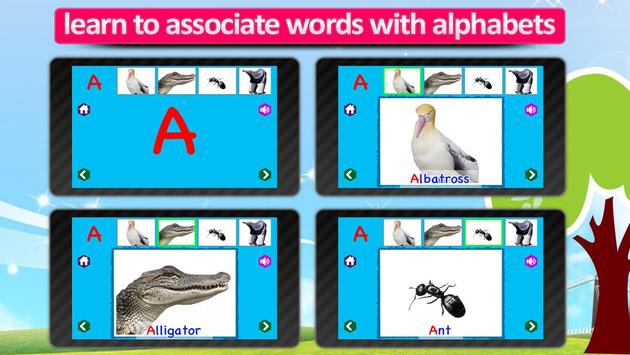 * Multiple animals for each alphabet with voice of animals and birds