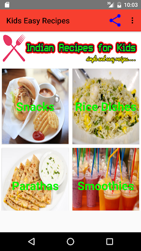Kids Easy Recipes is for all who wants to cook healthy, easy and quick recipes for their loved ones. The App is designed by making simple User Interface and has variety of recipes. The large variety of recipes will give lot of food options and by using this app you will be able to make yummy meals. This App will give you number of lunch box ideas for kids, So that your kid will not get bore with repetitive food :-).