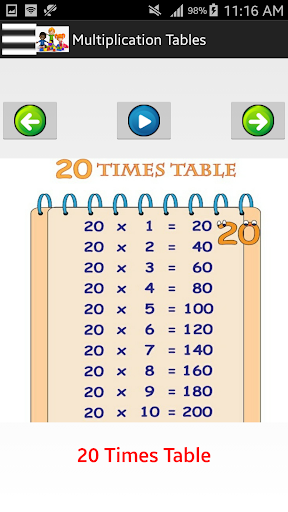 2. Multiplication Table - 1 to 20.
