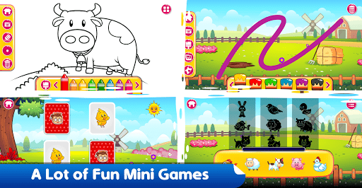 > 6 fun and educational mini games including Memory Games, Coloring Books, Sticker Books, Daycare, Magic Puzzle, and Maze.