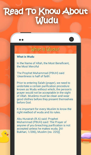 Kids Wudu Series is an Android App for teaching kids Wudu. Learn how to make Wudu with easy steps. This Application consist Wudu steps with illustrations. Step by step Salah for kids prior needs Wudu (ablution), Tayammum and Islam Duas to learn and memorize.