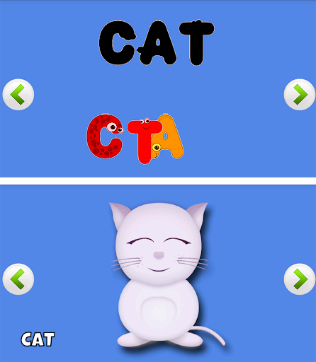 This cute game introduces alphabet and words to toddlers. Kids get experience of the alphabet by solving simple puzzles. Initially a word and a set of letters is presented, children have to place the letters in their correct position, when all letters of the word have been put into place a colorful picture corresponding to the word is revealed. This is a great educational game for kids, they learn the alphabet and have fun at the same time. It is probably more suitable for languages that use the latin alphabet.
