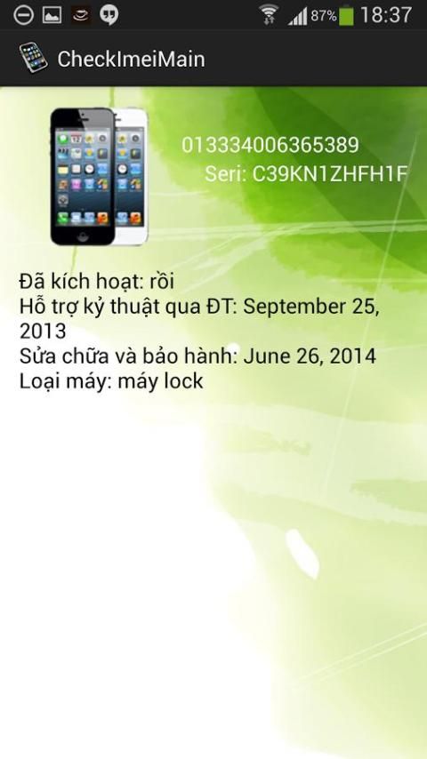 Application Testing helps IPHONE IPHONE check information via IMEI (Vietnamese application | applications written). In some cases you need to check the machine information in the hands immediately and only phone or android tablet, this app will suit you.