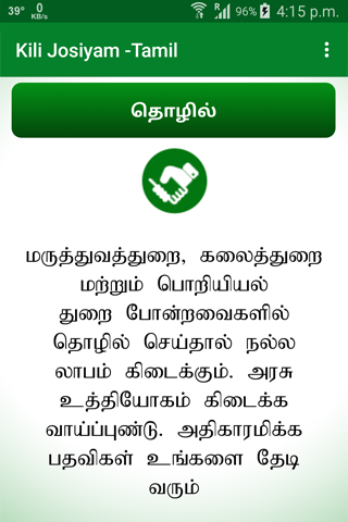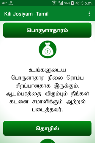 Parrot astrology (Kili Josiyam) is an art of India which mostly perform in Southern India.