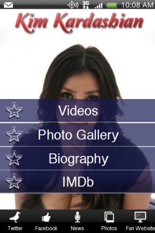Kim Kardashian Sexy EVERYTHING Imagine if you had an app that could give you the latest pictures VIDEOS, stories facebook twitter and NEWS about Kim Kardashian right at your finger tipsThe BEST Kim Kardashian App EVERKim39;s latest news within this app also includes other hot topics on the latest celebrity videos, news and pictures.Some of Kim Kardashian39;s fans have put together the perfect app of all her latest pics, videos, updates, and news about her and her successful career.Here39;s a Taste of What You39;ll Get: Sexy Pictures of Kim Kardashian Kim Kardashian39;s TWITTER and FACEBOOK Latest news about Kim All types of videos with Kim Kardashian All the hottest celebrity news and updates Kim Kardashian39;s Biography MORE additional Photos of Kim And Much More..content is Updated Every DayDon39;t Miss Out On This AppGrab your Kim Kardashian Sexy App TODAY for FREEDisclaimer: All trademarks and copyrights are owned by their respective owners. This fan content is not endorsed nor associated with, produced by, Kim Kardashian or any entities of Kim Kardashian.