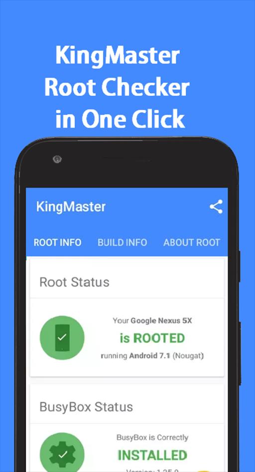 KingMaster : Root Checker 2020 displays the most important information when determining whether root (superuser or root checker ) access has been busybox installed.