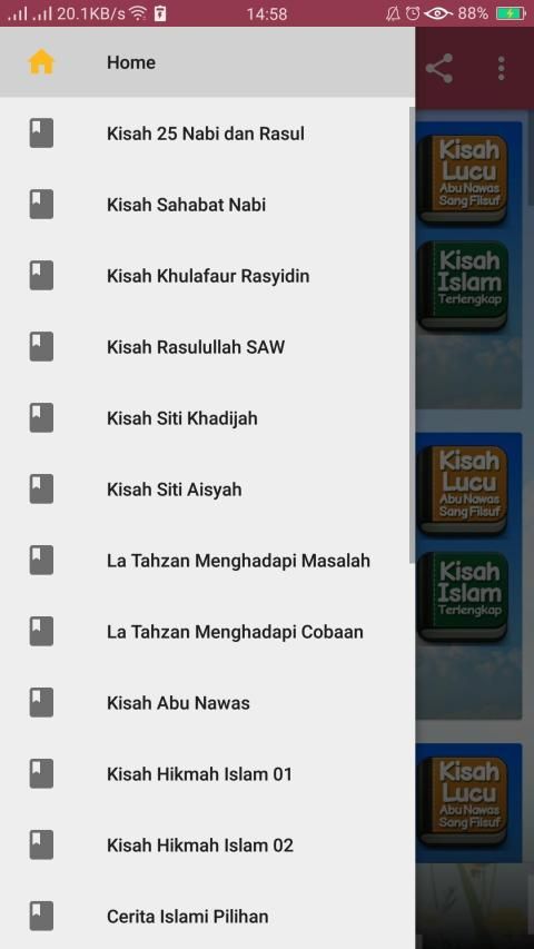 adapun cerita atau kisah dalam aplikasi ini antara lain: