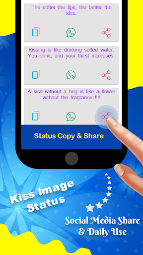 You can say Kiss to your friends, your lover, or your family, relatives, colleagues, at Kiss everyday by sending a greeting Kiss Gif Or picture or message or quotes card.