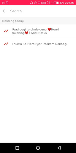 Search : Here you will search the videos by song name, and here u can see trending videos on application and category wise etc..