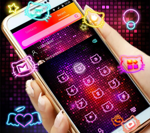 - neon kitten lock screen theme with cool kitty dynamic wallpaper