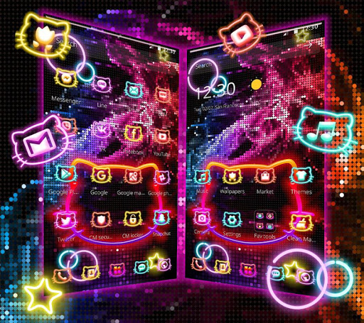 Neon Kitty is a Andrews system of mobile phone theme, with 3D dynamic effects, 3D weather effects, beautiful application icons and black technology wind wallpaper, with neon lock screen Kitty icon and cat address book. The theme applies to most Android models. Install neon cat, experience 3D main screen, let your phone cool up.