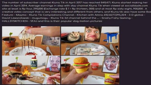 In the Closing Eating Videos application you will see how Vloggers Make Money easily and quickly with amazing attractions that you have never seen in the world, The number of subscribers Kluna Tik in April 2017 has reached 849,471. Kluna started making her video in April 2014. Average earnings per day Kluna Tik channel when viewed at socialblade.com site at least Rp 4.290.000 (exchange rate $ 1 = Rp 13.000) and at most Rp 68.900.000. The creative video concept is very interesting and different from the others.