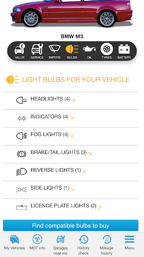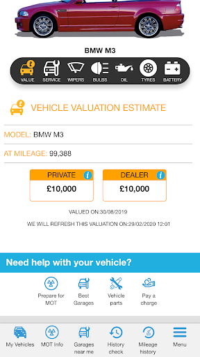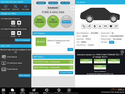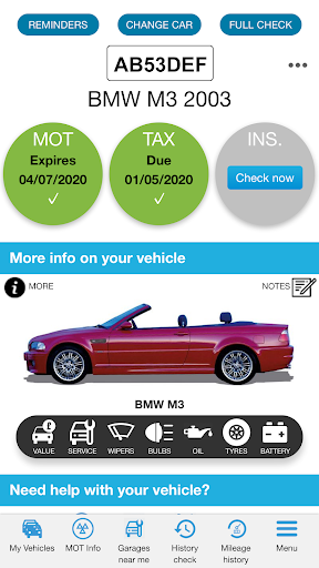 The app gives all the help and information you need to know about your car. From MOT, TAX and insurance status, to recommended service items and help from recommended garages nearest to you.