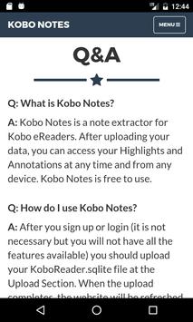 Kobo Notes is a note extractor for Kobo eReaders. After uploading your data via the web application at www.kobonotes.com, you can access your Highlights and Annotations at any time and from any device.