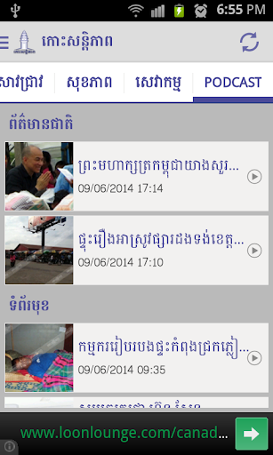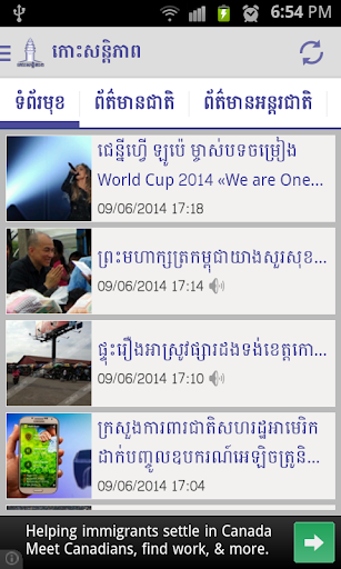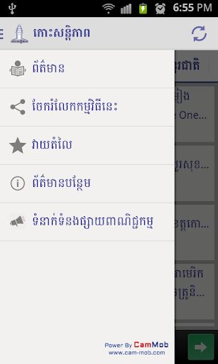 This application will provide you Cambodia's latest top stories, business news, sport news and plenty of useful information such as services, tourism and cultural news in Khmer language. You can also listen to live Radio of Kohsantepheap directly from this application. Moreover, all these information can be easily shared among your friends via Twitter, Facebook and e-mail within the application itself. All latest articles are loaded and stored locally in the device so users can read news in offline mode without Internet connection.