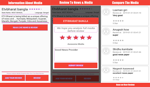 App Is providing the user review audit and rating system, User Can Upload the media and News and others will provide his opinion and rating on News and media with the rating.