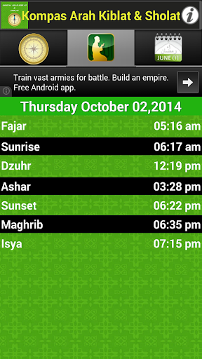 Kompas Arah Kiblat & waktu Sholat merupakan aplikasi 3 dalam 1, yaitu sebagai kompas untuk arah kiblat, waktu sholat dan sebagai Kalender Islam Hijriyah & Masehi.