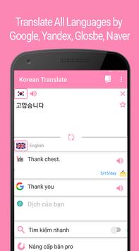Translate Korean to all Language by combo translator translate simultaneously with Google Translate, Microsoft Translator, Yandex Translate, Glosbe Translate, NAVER translate. Enter your text and get the translations from all translators at the same time.