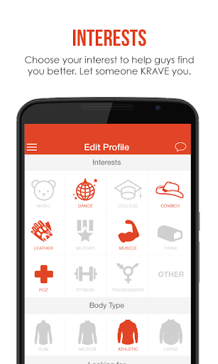 Note: Krave only allows males 18 years or older to use the application. Krave does not allow photos depicting nudity or sex.