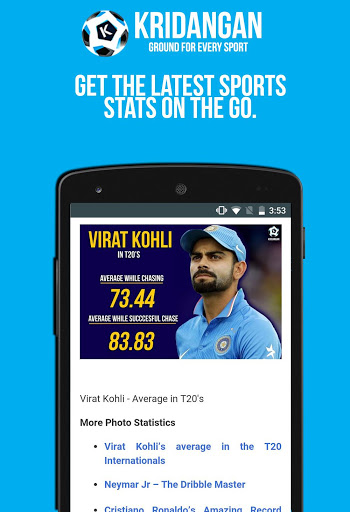 Kridangan.com official app keeps you updated to all the latest news from the sports world, with wide coverage of many sports including Cricket,Football, Tennis , Hockey, Kabbadi, Badminton, Squash, Racing , WWE etc. We bring you live results, match reactions and detailed analysis of the match by our experts. Our goal is not to just accumulate raw statistics, but to dig into the core of events. We thoroughly analyze all data to be sure that a single piece of information will not be missed. Our staff works 24 hours a day, 7 days a week to bring you the utmost information about every game, every match.