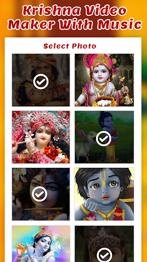 Krishna Video Maker- Bal Krishna Video Editor app helps you to create fast, easiest and awesome slideshow with selected photos and music. For creating videos or slideshow from this application you can just select photos form gallery or captured photos from camera, add music track and select stunning animations.