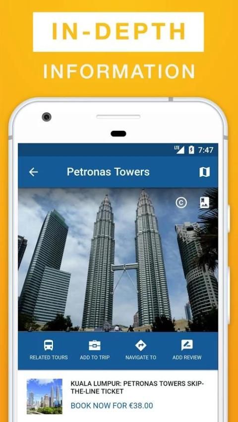 Download the app offline and use the Kuala Lumpur map, travel guide and trip planner without an internet connection