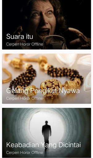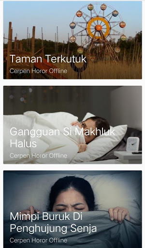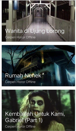 Cerpen horor offline ini sungguh sangat menyeramkan dijamin bulu kuduk akan berdiri dengan kencang dikarenakan rasa takut yang menjadi-jadi. Ada banyak cerita pendek hantu dalam aplikasi ini, diperkirakan kurang lebih ada ratusan cerita pendek yang bisa dibaca oleh para downloader atau user. Disarankan untuk tidak membacanya saat malam hari apalagi sendirian karena bisa menyebabkan serangan jantung dan berhalusinasi yang tidak-tidak saat atau setelah membaca cerita horor ini. Namun bagaimanapun juga ini hanyalah sebuah cerita pendek atau bacaan yang bisa jadi hanya sebuah rekaya bukan kejadian yang sebenarnya.