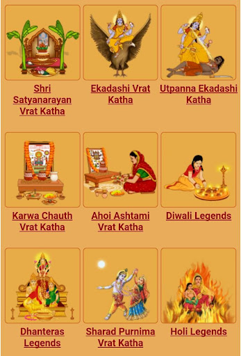 12. Vrat Katha: Vrat Katha in all Hindi is available. The following stories in Hindi is given in the app.