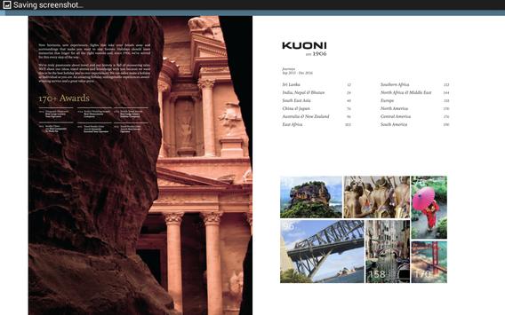 Welcome to the Kuoni Travel Brochure app giving you fast access to all our current brochures, videos, store location notification and images as well as a direct link to Kuoni Travel website.