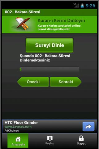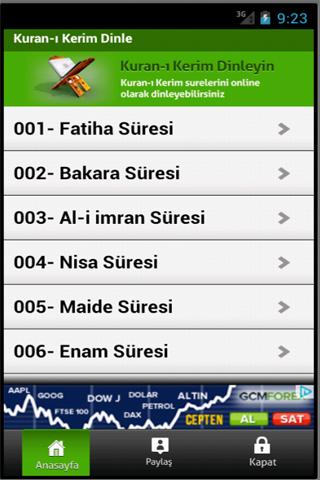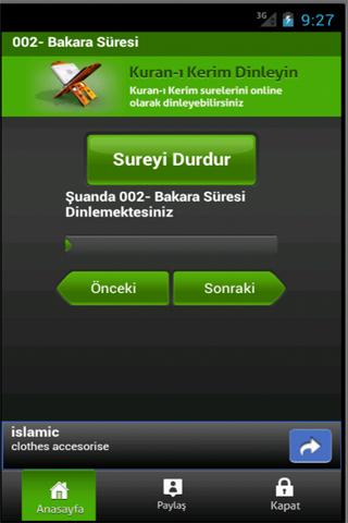 Bu Uygulama zerinden kuran Kerim de bulunan Sureleri online olarak dinleyebilirsiniz.Uygulama zerinde Kuran Kerimde bulunan tm Sureleri Dinleyebilirsiniz. Dinlediiniz sureyi durdurabilir, geri alp yeniden dinleyebilirsiniz.Karlama Ekranna Dokunduunuz takdirde sure listesi yklenecektir.Uygulamann daha ok kitleye ulamas iin yorumlarnz ve puanlarnz esirgemeyiniz.