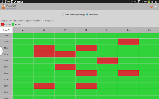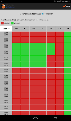 A life saver application especially for parents (Easy time planning for parental control). Enable ONLY the applications you choose and run them ONLY during the time periods you define.